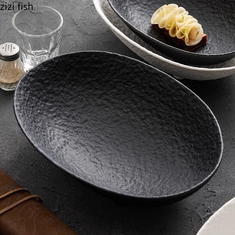 Керамический поднос для фруктов с матовым камнем и узором на четырех ножках, овальная тарелка для салата, глубокая тарелка, тарелка для конфет и орехов, домашняя креативная посуда