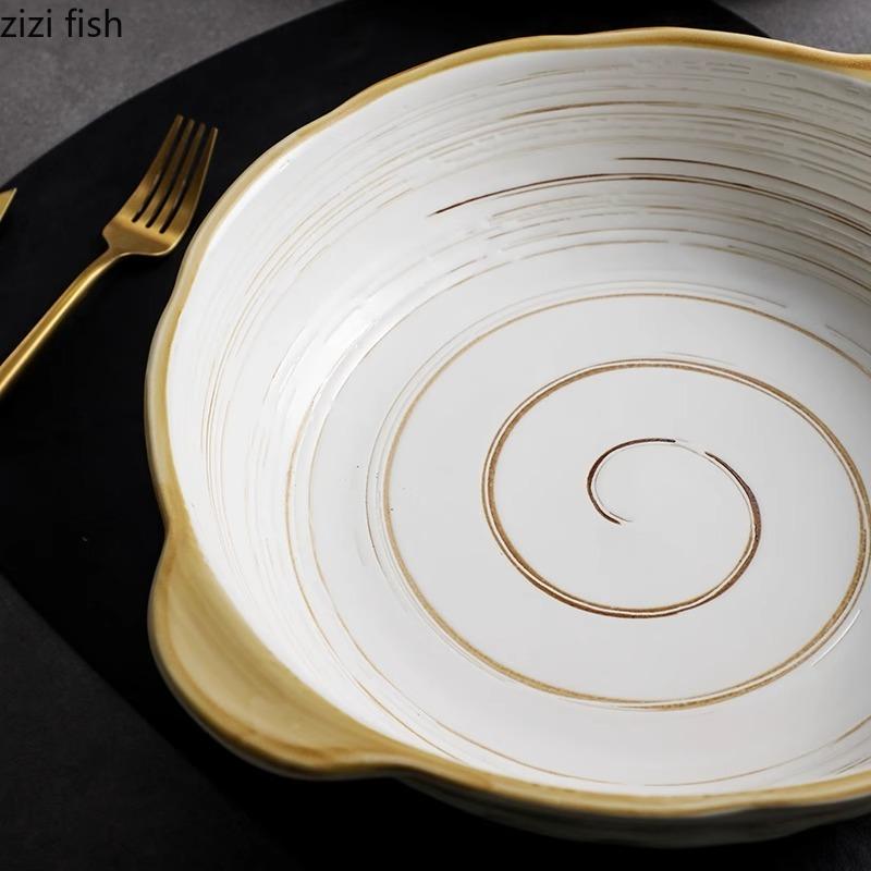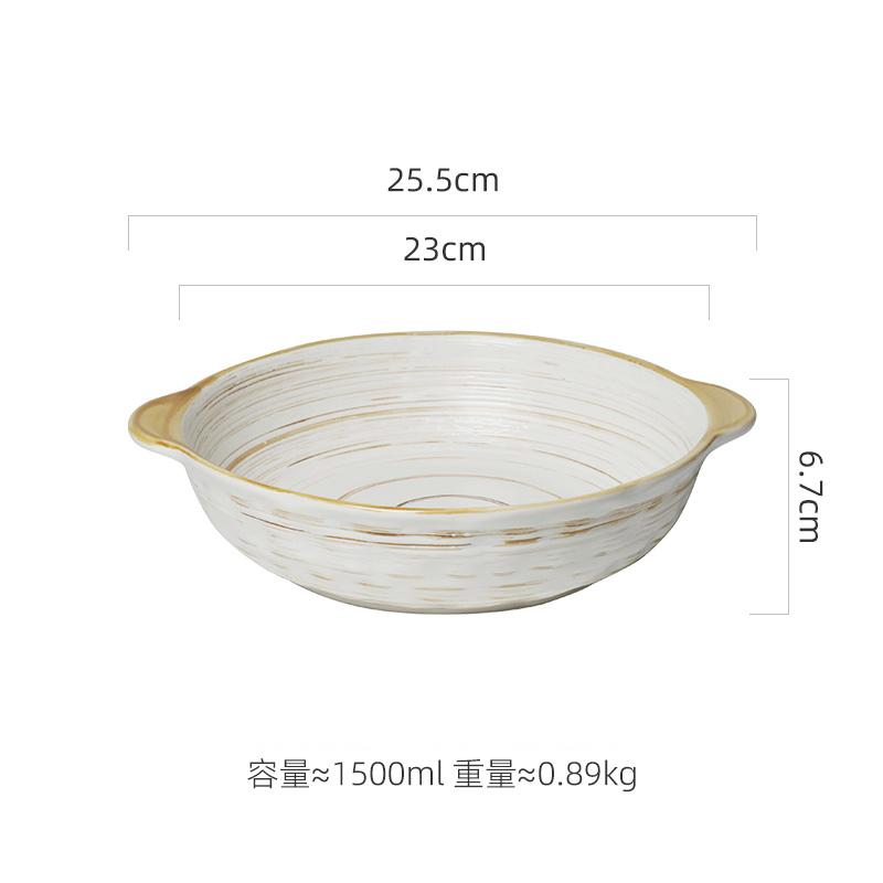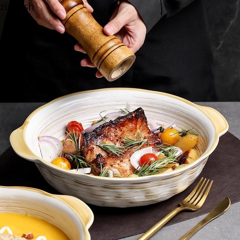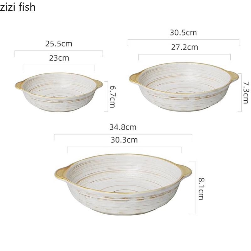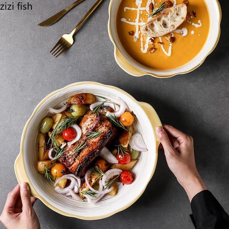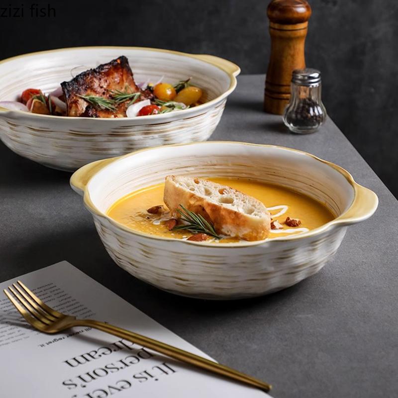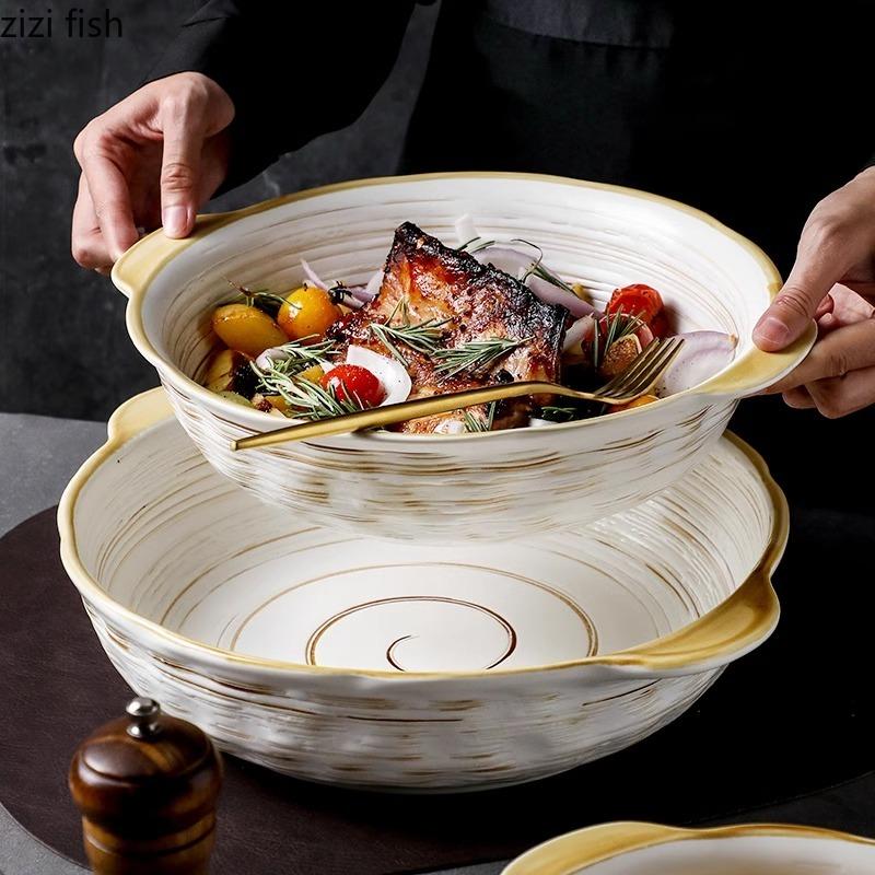 Винтажная керамическая миска с двумя ушами, большая емкость, суповая миска, салатница, миски для вареной рыбы, сервировочные миски, специальная гостиничная посуда