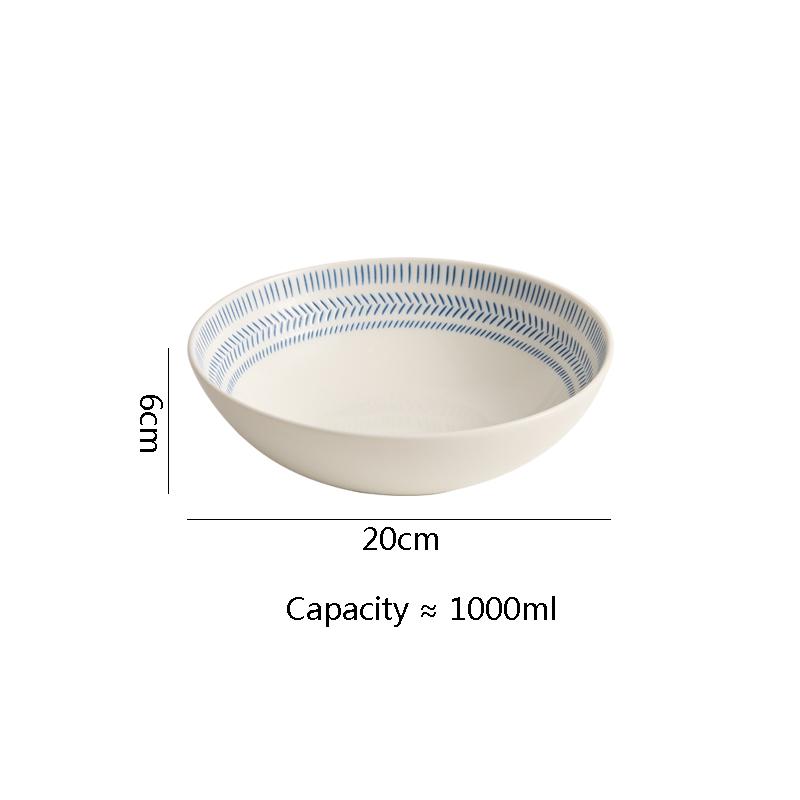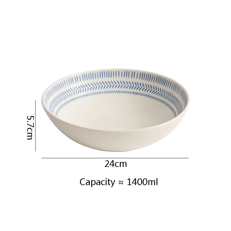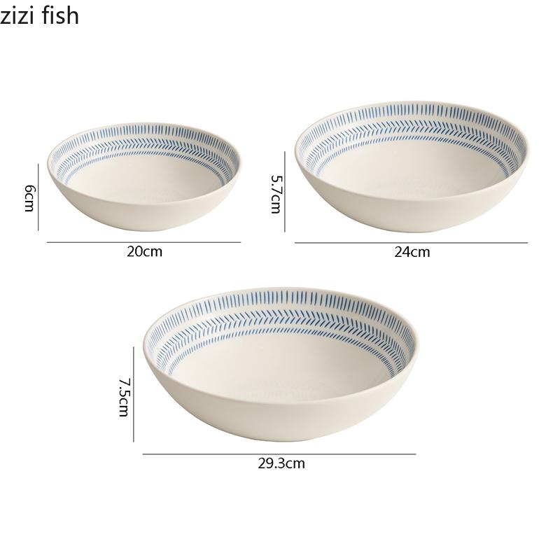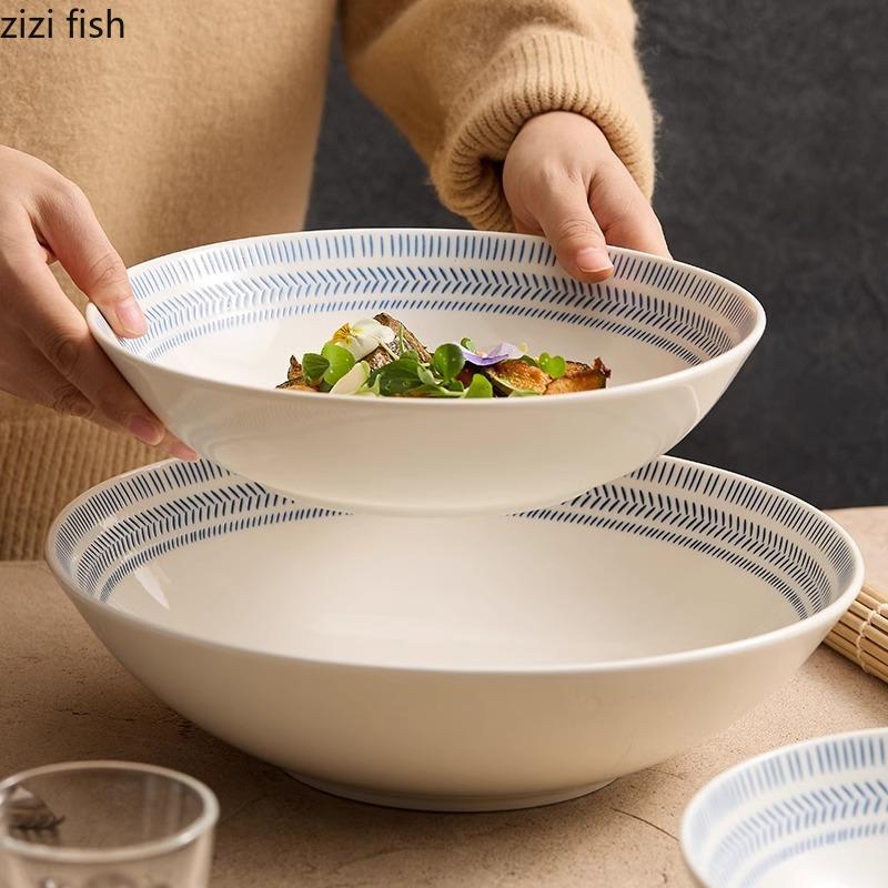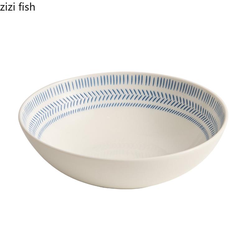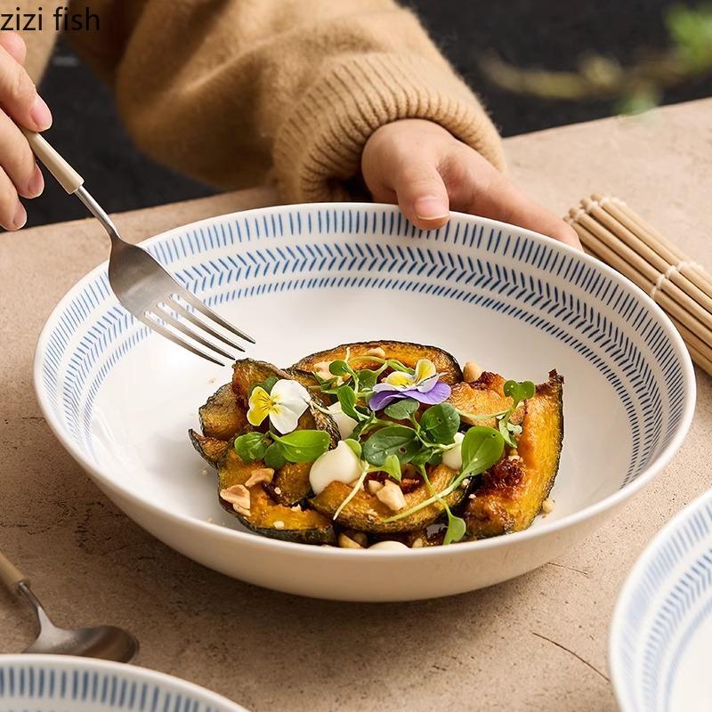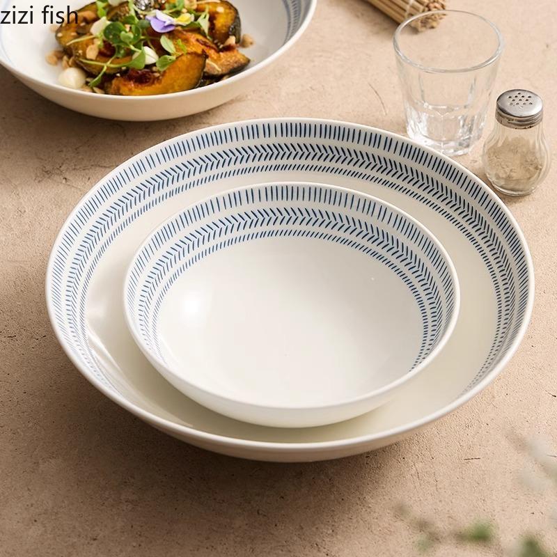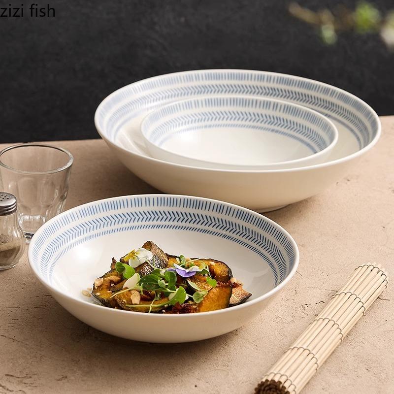 Синяя полосатая керамическая глубокая миска, салатница, миска для толстого супа, миски для пасты, сервировочные миски, цветная подглазурная посуда для ресторана
