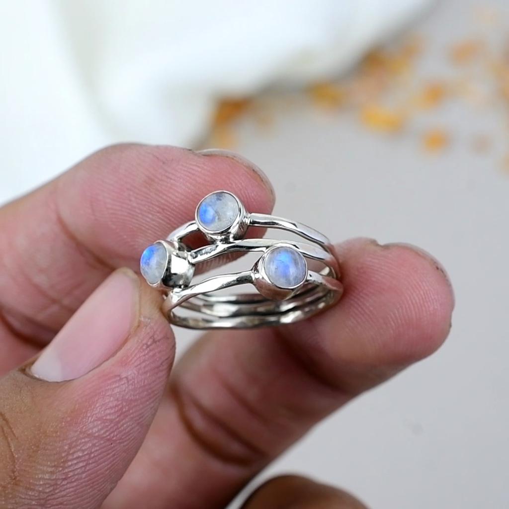 Кольцо ручной работы из стерлингового серебра 925 пробы с круглым радужным лунным камнем для женщин — купить товар онлайн с бесплатной доставкой по всему миру!