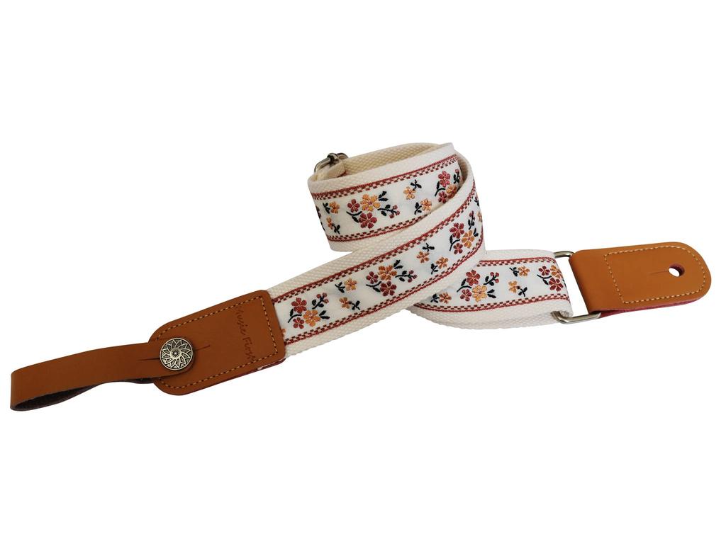 Оригинальная винтажная цветочная вышивка и натуральная кожаная укулеле. Плечевой ремень для укулеле поставляется с ремнем из натуральной кожи с дизайном [MUSIC FIRST],