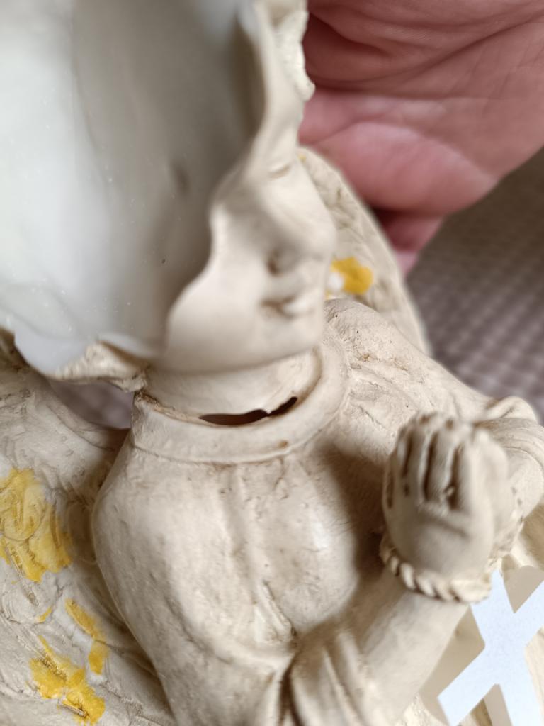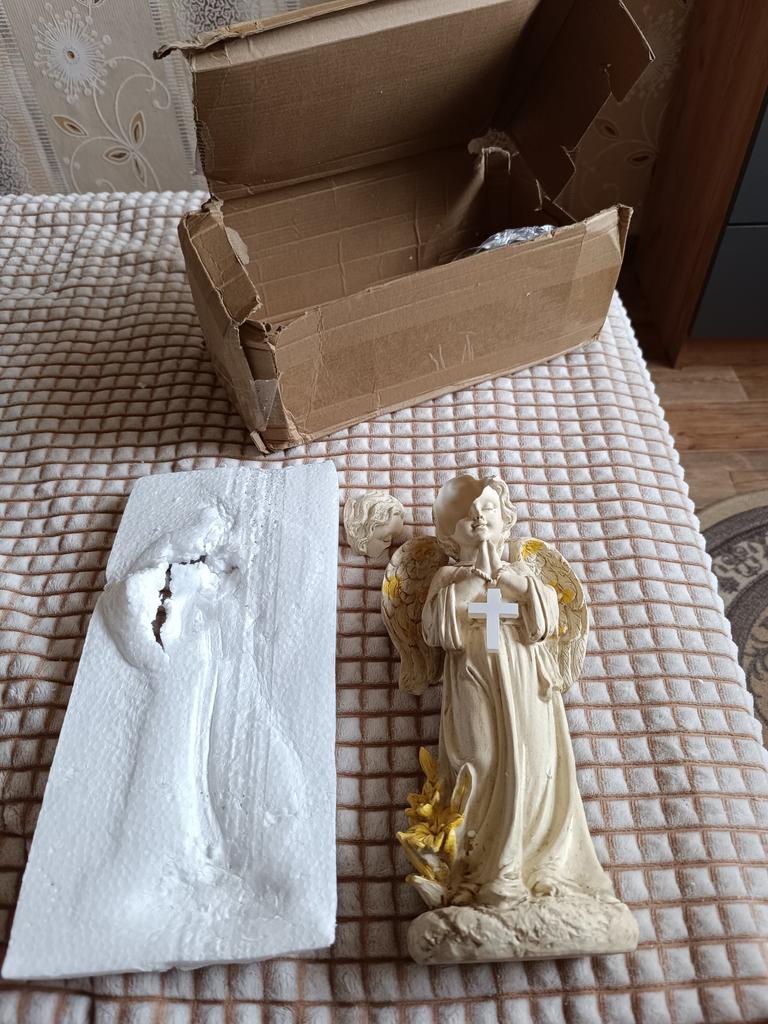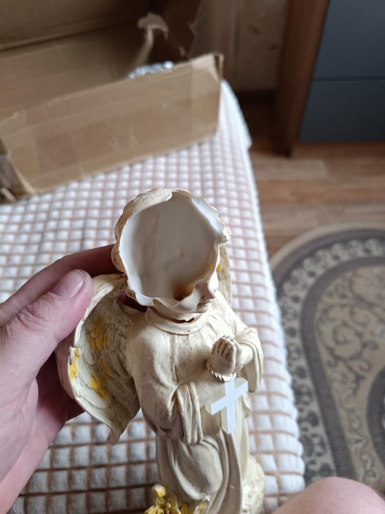 Задумка обалденная, качество ужасное. При изготовлении имеются места ( на фото видны) где есть дырки от некачественного литья (на шее и на кресте) и самое неприятное, что голова расколота. Доставка ужасная, упакована плохо, может такую расколотую положили Написал, отправил с фото. Без вопросов обещают вернуть деньги, жду.