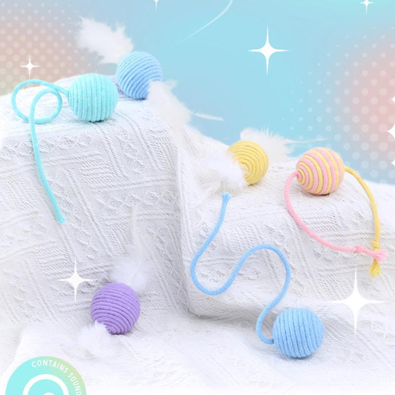 Устойчивый к укусам мяч из хлопковой веревки для кошек, красочные звучащие игрушки для ловли кошачьих царапин, износостойкий мяч-дразнилка для кошек, товары для животных