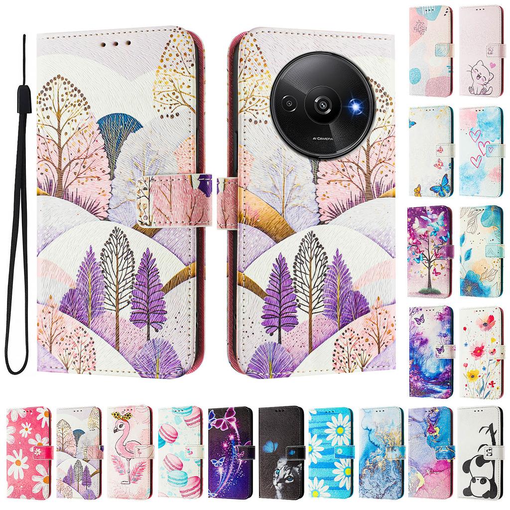 Роскошный кожаный чехол-кошелек с рисунком в виде пейзажа из искусственной кожи в стиле книги для Xiaomi 5X 6X 11 12, Redmi 6 7 8 9 10 12, Redmi Note 7 8 9 10 11 12...