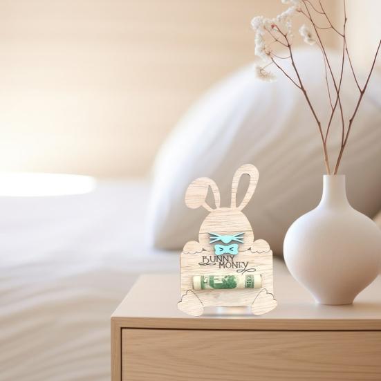 Многофункциональное декоративное изделие: Наш держатель для денег в виде пасхального кролика не только служит для хранения денег, но и является стильным декоративным акцентом, подходящим для различных случаев, таких как дни рождения, празднование Пасхи или вечеринки по случаю рождения ребенка, добавляя нотку очарования и элегантности любому мероприятию.