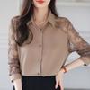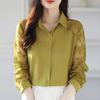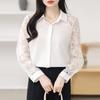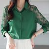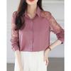 16 цветная кружевная шифоновая рубашка в стиле пэчворк, женская блузка, модный алый топ с длинными рукавами, тонкая рубашка для работы и вечеринки, однотонная