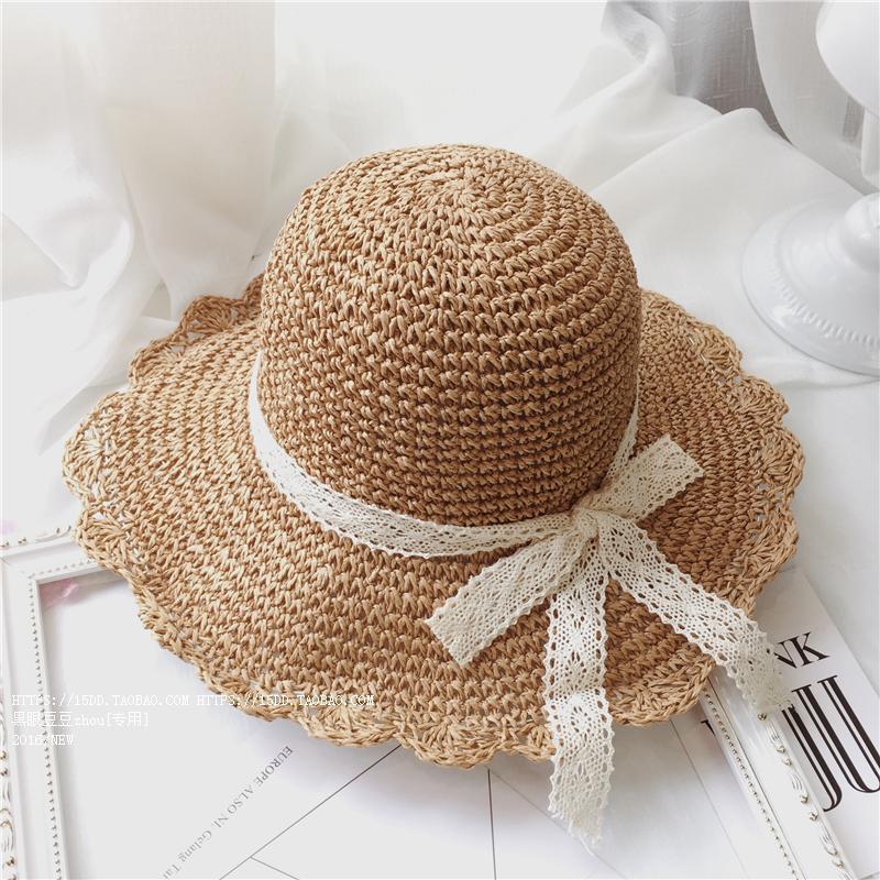 Летняя соломенная шляпа женская, ручной работы, с большим краем, складная, пляжная, кружевная, универсальная, солнцезащитная, летняя шляпа от солнца