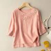 Женские рубашки из хлопка и льна с цветочной вышивкой, повседневные свободные туники, летние рукава три четверти, дышащие, удобные блузки