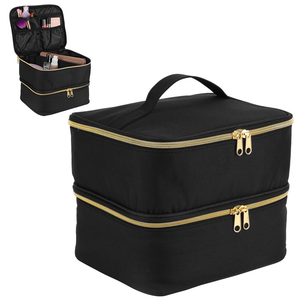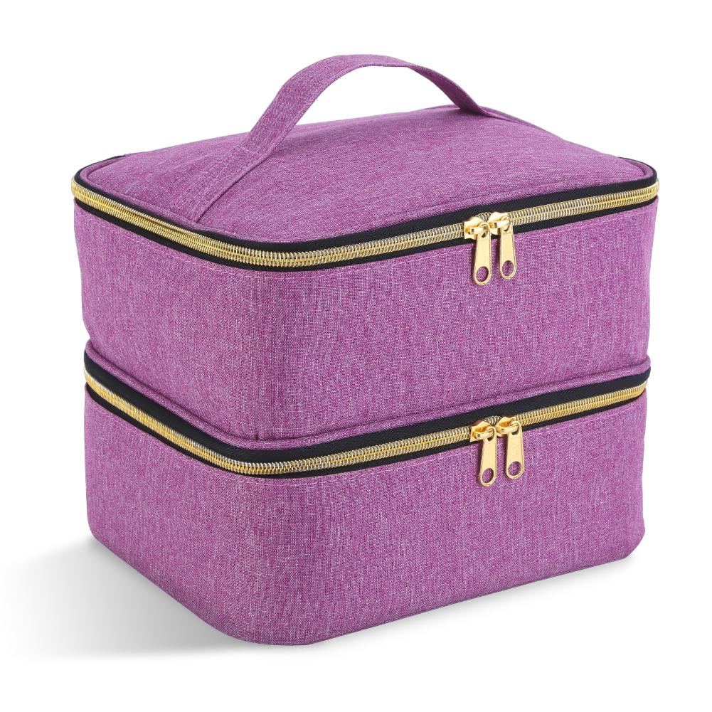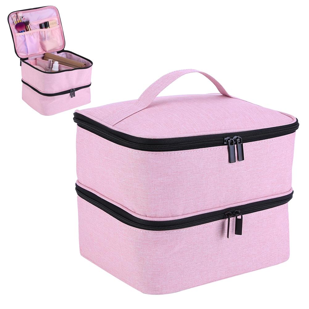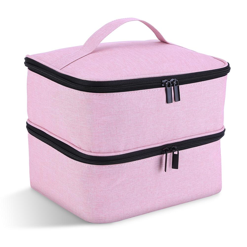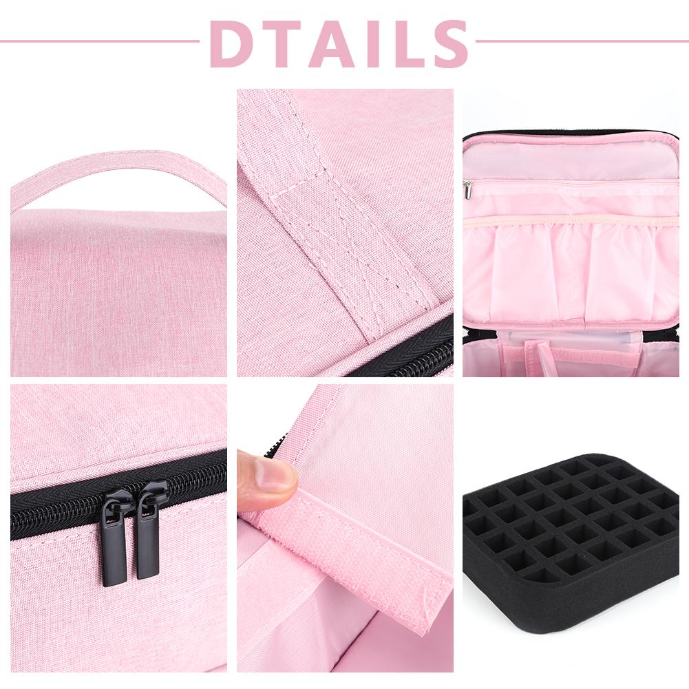 2. Двухслойная конструкция: Нейлоновая сумка-органайзер имеет большой двухслойный лак для ногтей и УФ-отделочное пространство, чтобы держать набор для ногтей чистым и упорядоченным, так что вы можете легко получить то, что хотите, не нарушая другие аксессуары для ногтей.