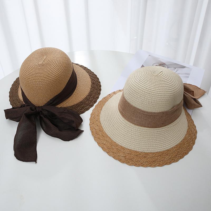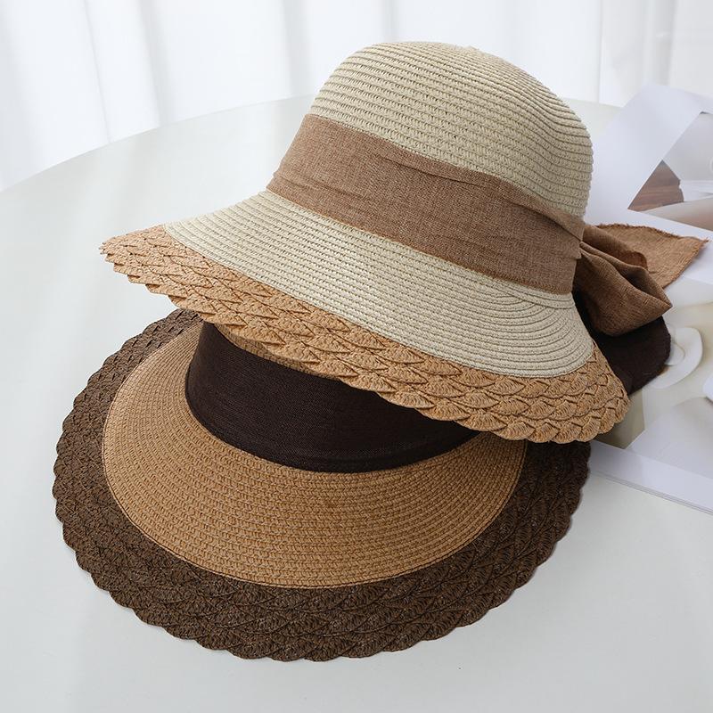 Цветная шляпа-бантик для женщин на лето с большим карнизом для защиты от солнца и затенения, разрез для низкого хвоста, шляпа рыбака