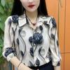 Новые весенне-осенние топы с цветочным принтом, длинные рукава, отложной воротник, женская блузка, рубашка, модная однобортная одежда OL