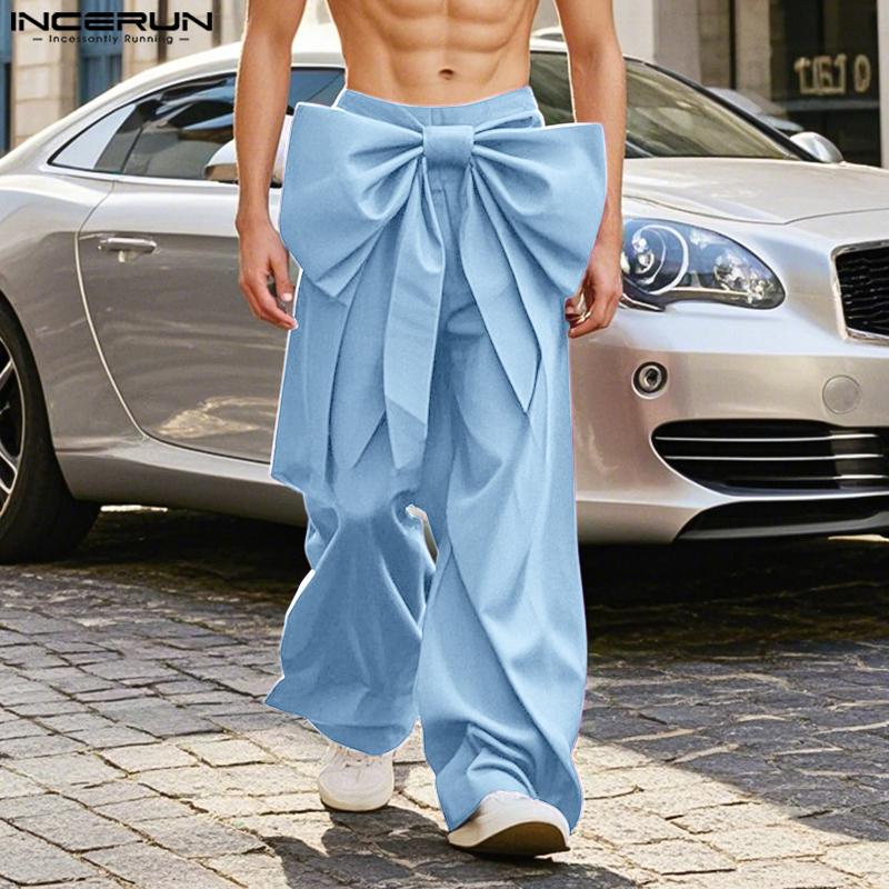 INCERUN Мужские повседневные брюки с широкими штанинами и бантом на молнии до талии