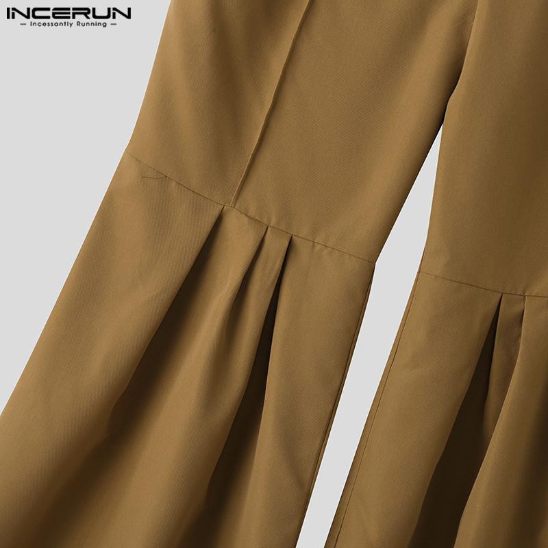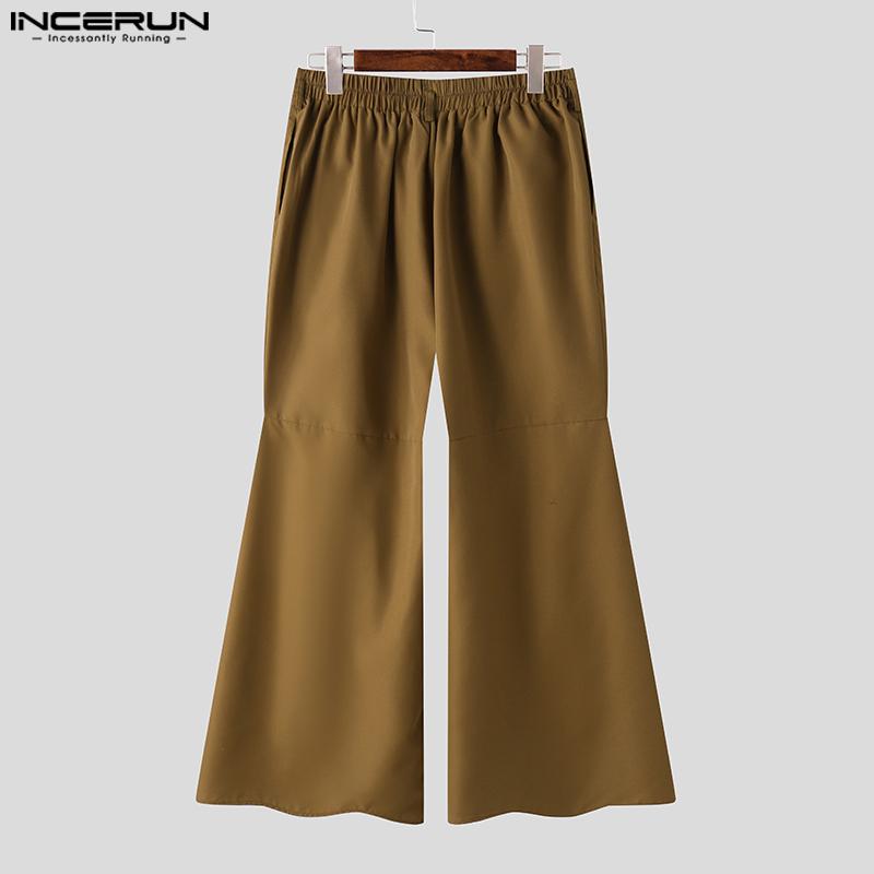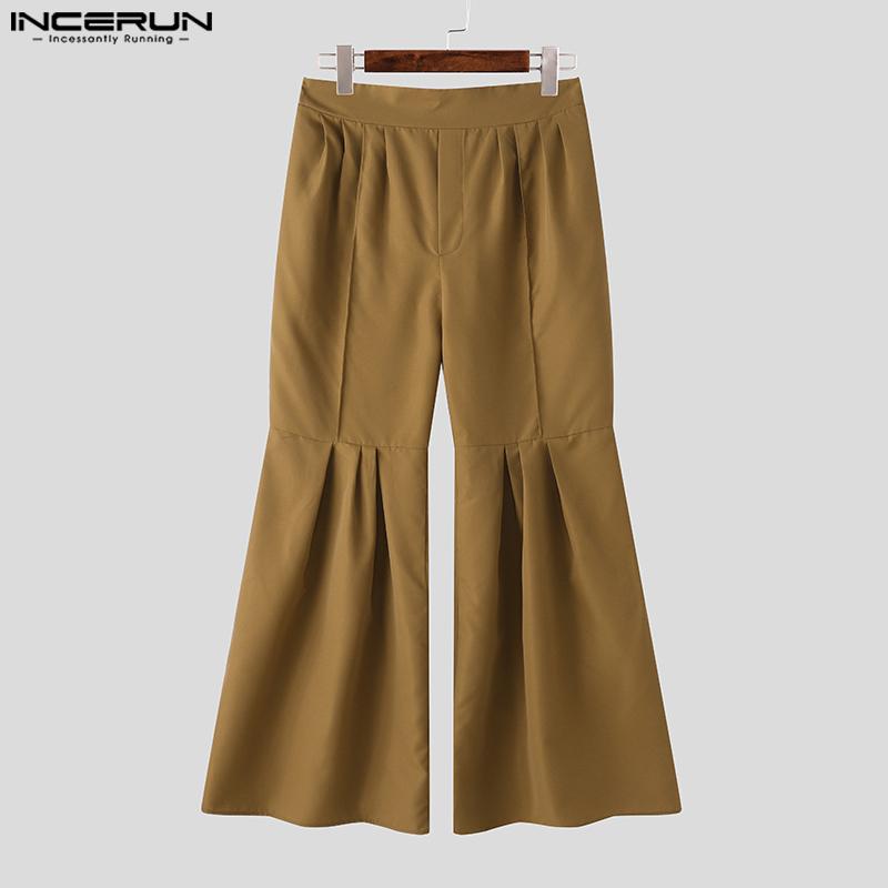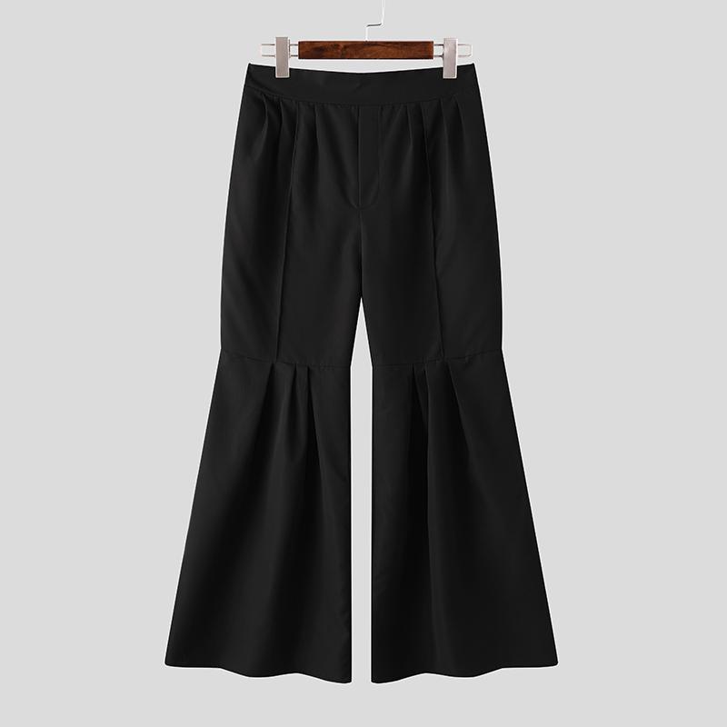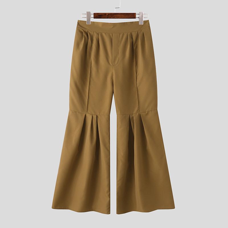 INCERUN Мужские повседневные длинные расклешенные брюки с высокой резинкой сзади и оборками
