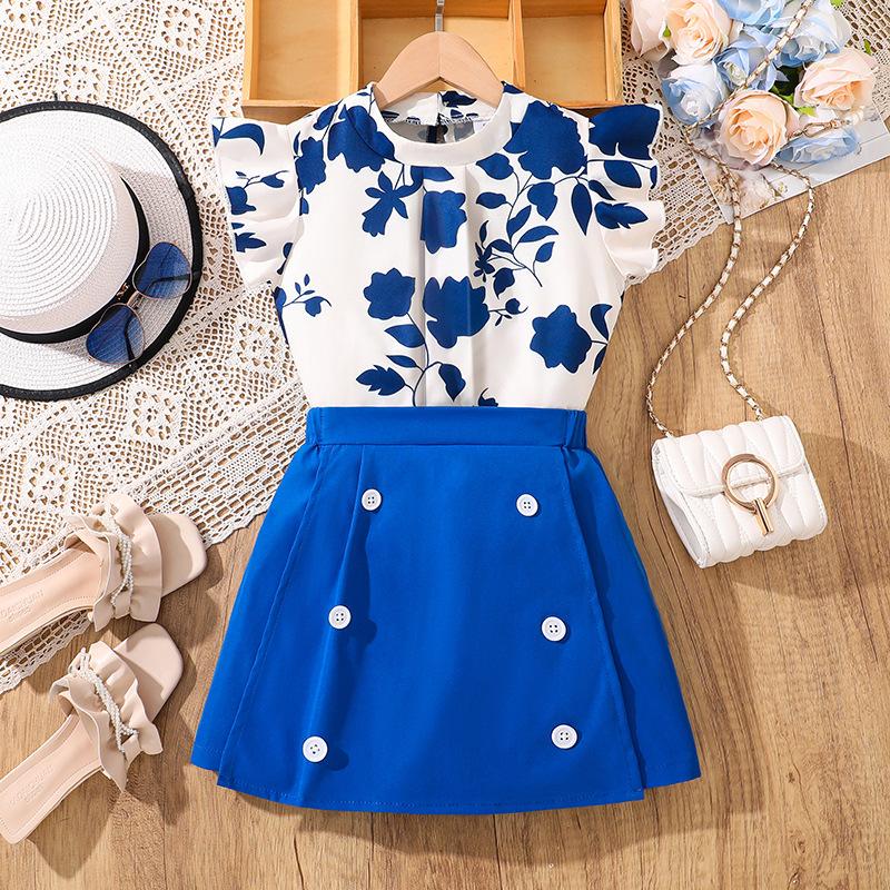 Повседневный костюм для девочек, летний детский топ с короткими рукавами и принтом, модные брюки-кюлоты, костюм из двух частей — купить товар онлайн с бесплатной доставкой по всему миру!