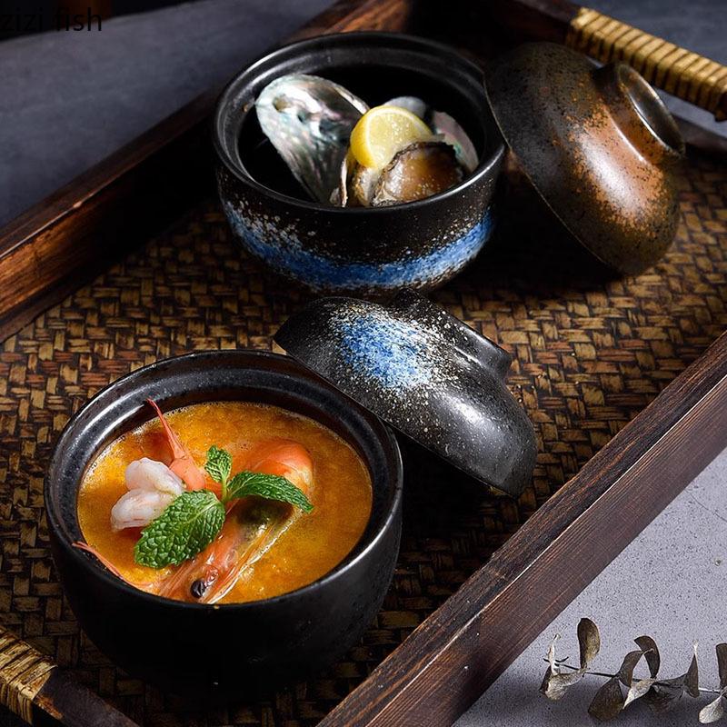 Керамическая миска с крышкой, креативный узор, миска для густого супа, миска для вареных яиц, миски для десертов, миски для закусок, специальная посуда для ресторана
