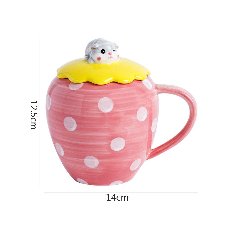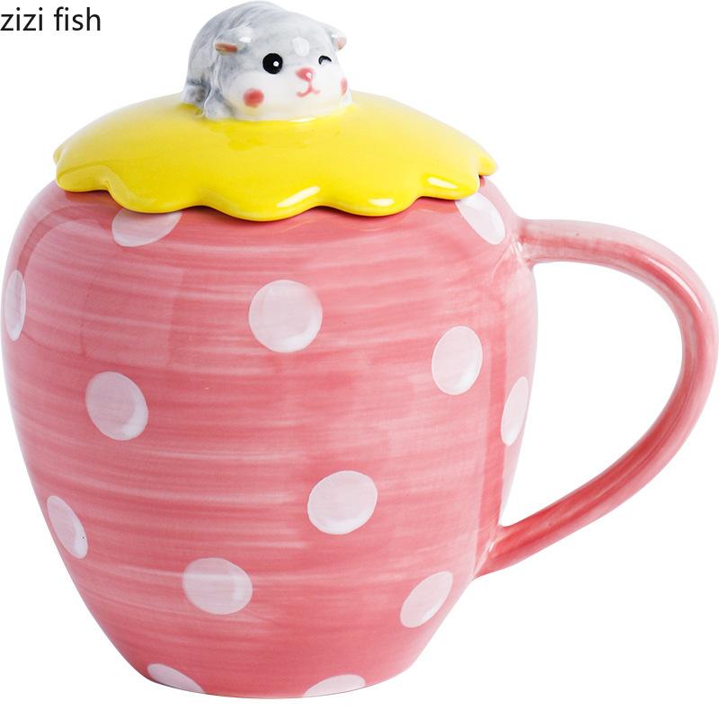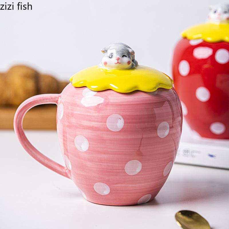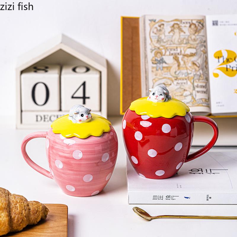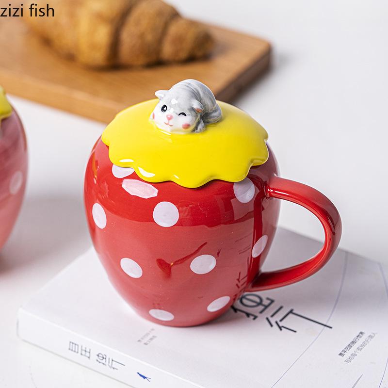 Творческая керамическая кружка в форме клубники, симпатичная кофейная кружка с крышкой, чашка для послеобеденного чая, молока, сока, напитков, стакан для воды