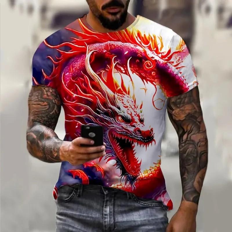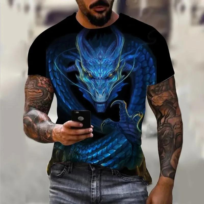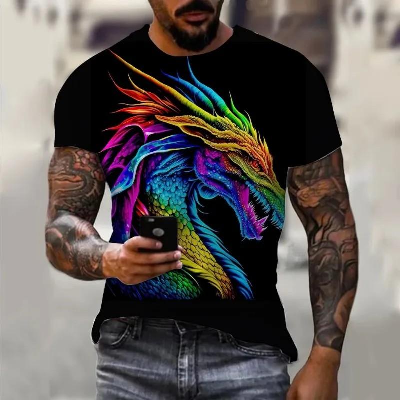Футболка с круглым вырезом и принтом дракона, мужская, с коротким рукавом и принтом уличной моды, с 3D-принтом, мужская, с тропическим принтом, мужская одежда больших размеров