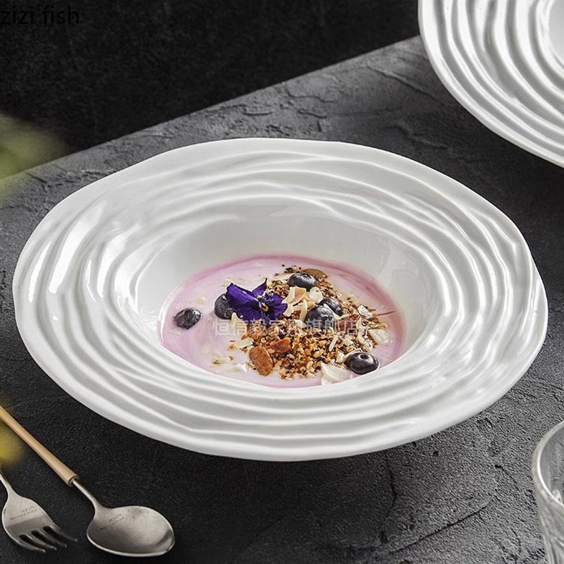 Чисто белая керамическая тарелка с рисунком в виде волн на воде глубокая тарелка салатная тарелка десертная тарелка тарелки для пасты особая посуда для молекулярной кухни