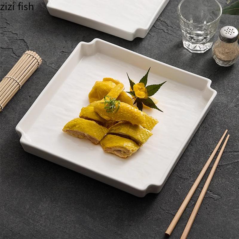 Однотонная креативная керамическая тарелка с каменным узором, квадратная салатная тарелка, десертная тарелка, сервировочные тарелки, специальная ресторанная посуда