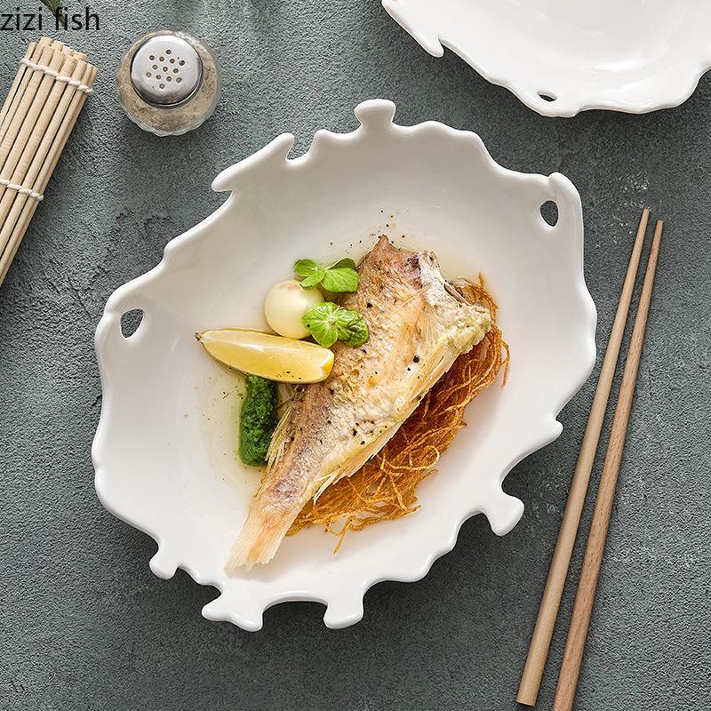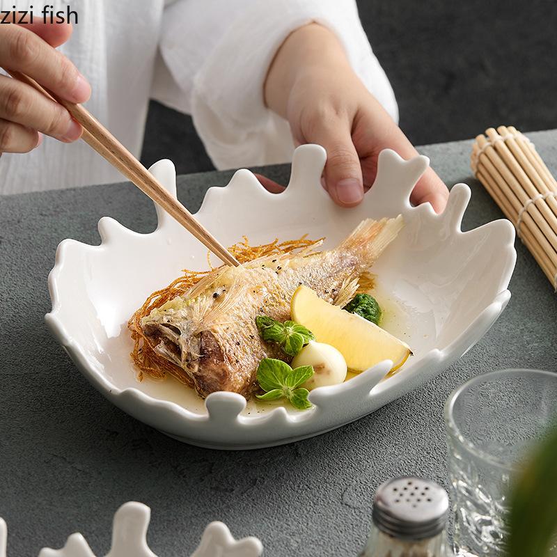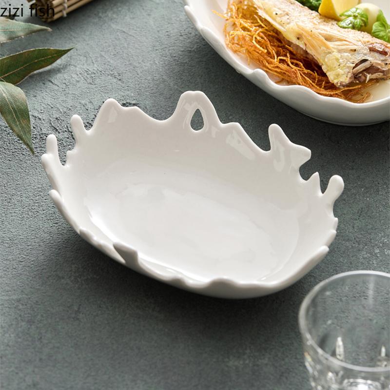 Овальная неровная коралловая тарелка Керамическая салатница Десертная тарелка Миска для закусок Сашими Миска для ресторана Художественная концепция Столовая посуда