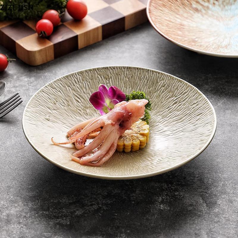 Креативная текстура Керамическая глубокая тарелка Винтажная салатная тарелка Толстая суповая тарелка Десертные тарелки для пасты Ресторанная посуда