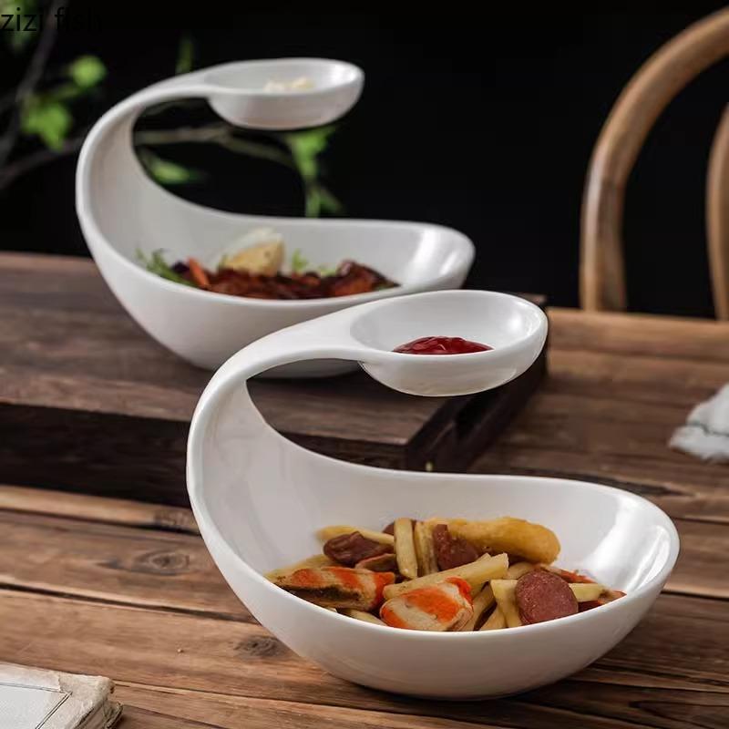 Чисто белая керамическая тарелка для закусок, креативная тарелка для картофеля фри, десертное блюдо, салатница, ресторанная посуда для молекулярной кухни