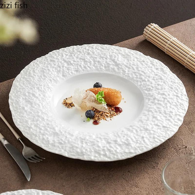 Керамическая тарелка с широким краем и узором из камня Тарелка для стейка Тарелка для пасты Десертные тарелки Тарелки для суши Специальная ресторанная посуда