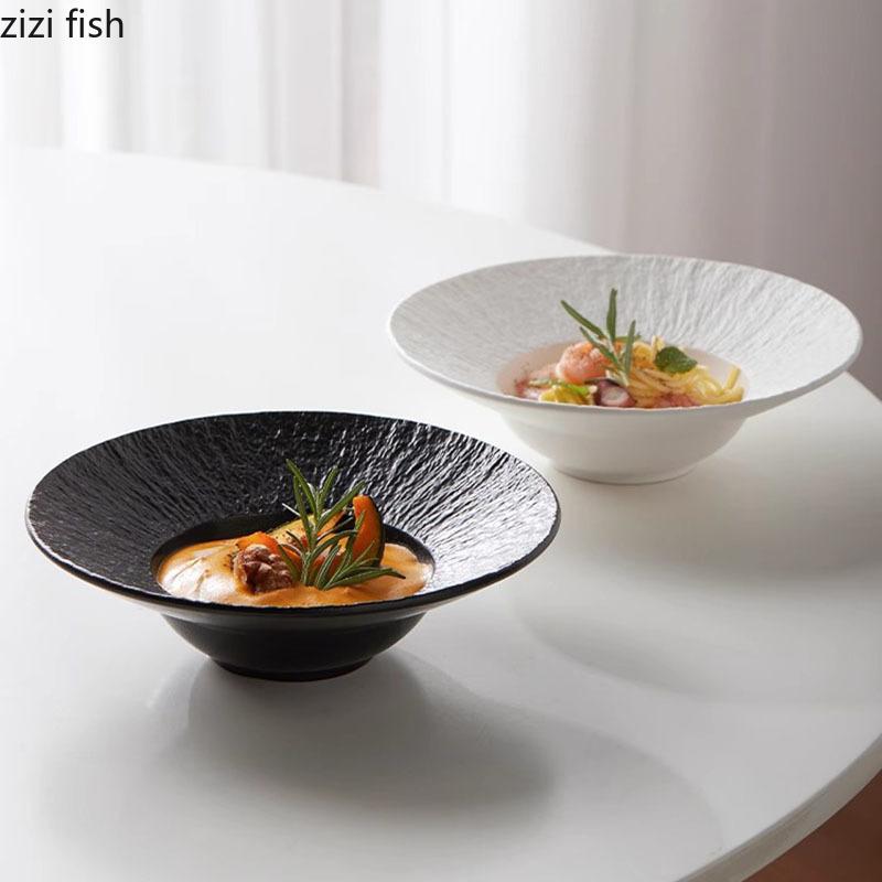 Однотонная керамическая обеденная тарелка с текстурой камня, толстая суповая тарелка, тарелка для салата, тарелки для пасты, специальная посуда для молекулярной кухни