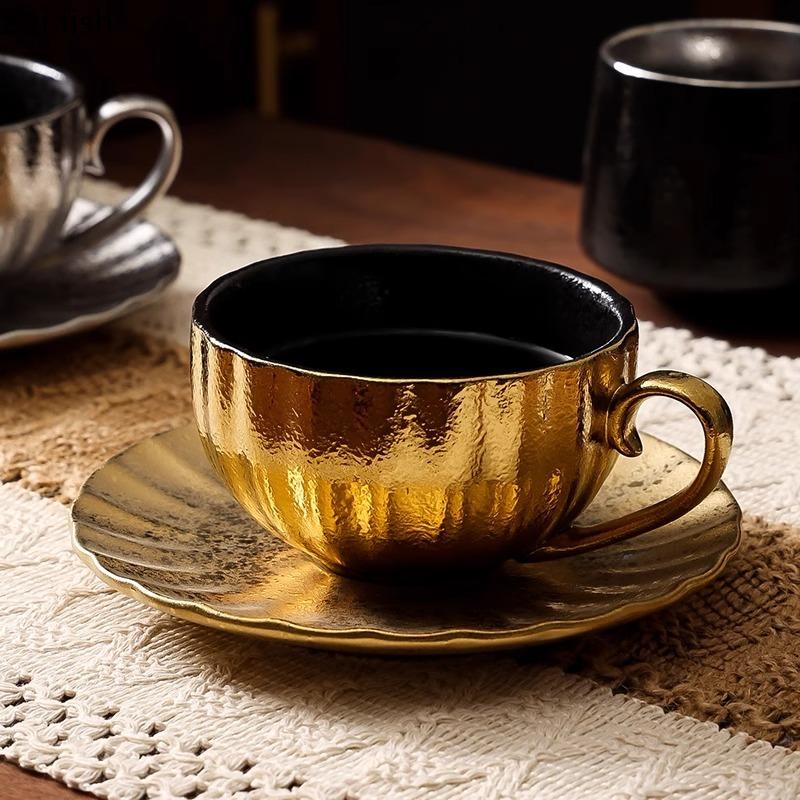 Творческая керамическая кружка из золота и серебра Винтажная кофейная чашка Набор посуды Чашка для матча Молочная чашка Чашки для латте Бытовые чашки для воды Чашки для чая