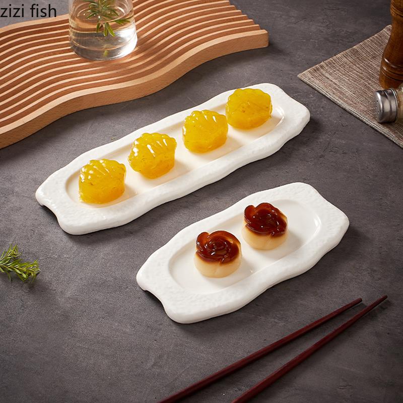 Чисто белая керамическая длинная полосатая тарелка Нестандартная тарелка для суши Десертная тарелка Тарелки для закусок Молекулярная кулинария Специальная столовая посуда