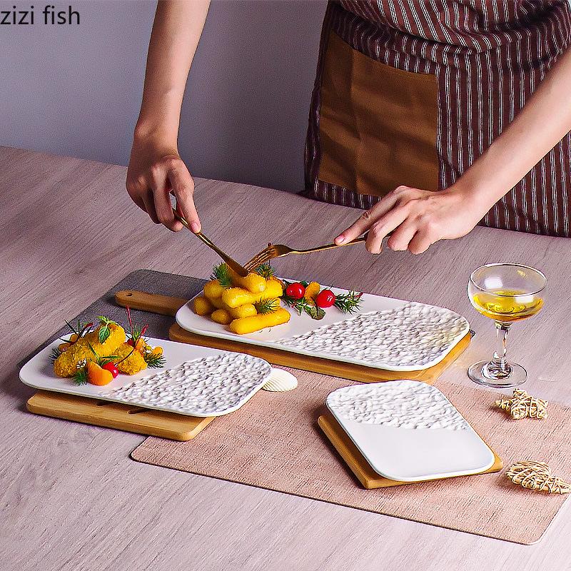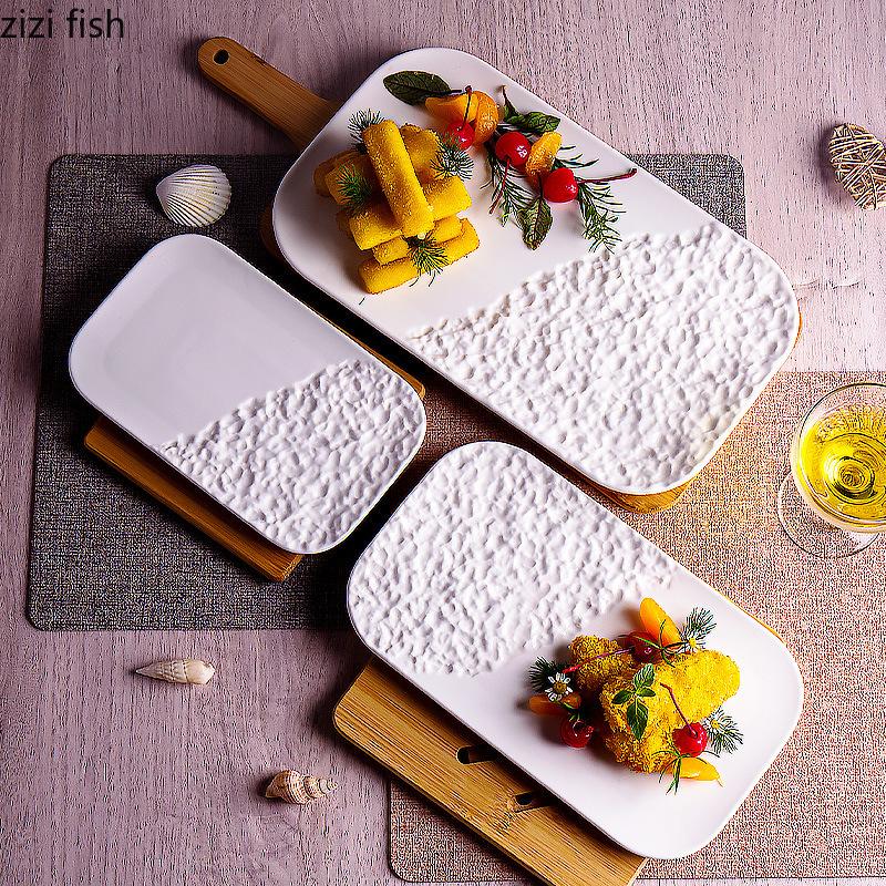 Чисто белая керамическая тарелка с узором из камня для суши, креативная тарелка для сашими, десертное блюдо, тарелка для барбекю, фирменная посуда для отелей