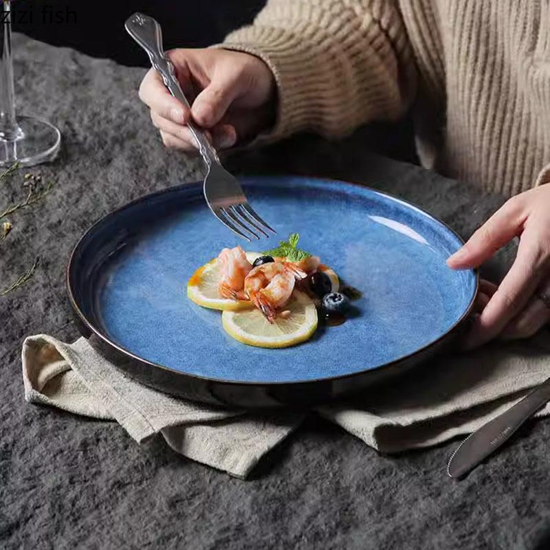 Керамическая плоская тарелка Kiln Changes Салатная тарелка Тарелка для стейка Тарелки для закусок Тарелки для приготовления пищи Молекулярная кухня Креативная посуда