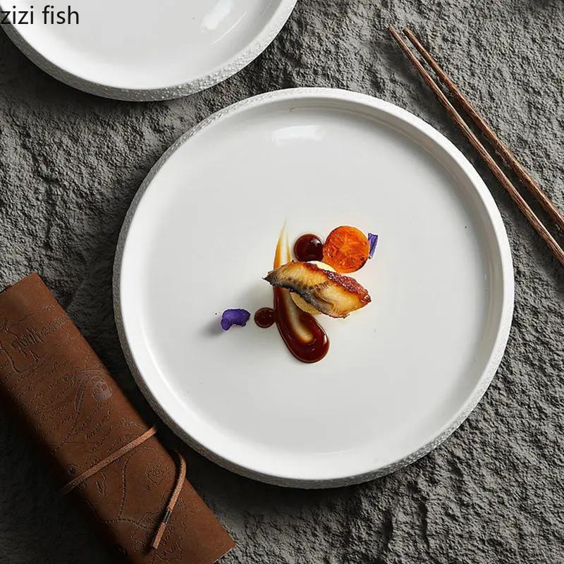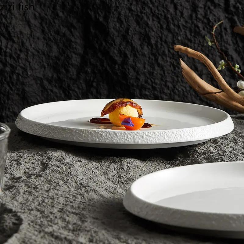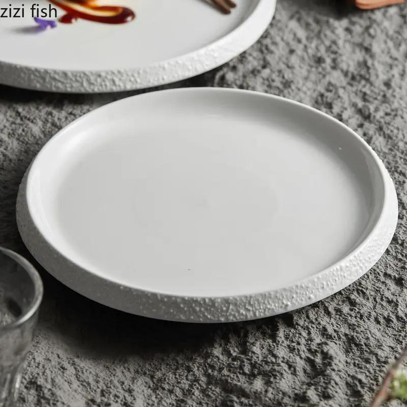 Каменный край Тарелка для основного блюда Паста Стейк Тарелка Десерт Суши Круглая Специальная Посуда Керамическая Обеденная Тарелка Кухонные Принадлежности