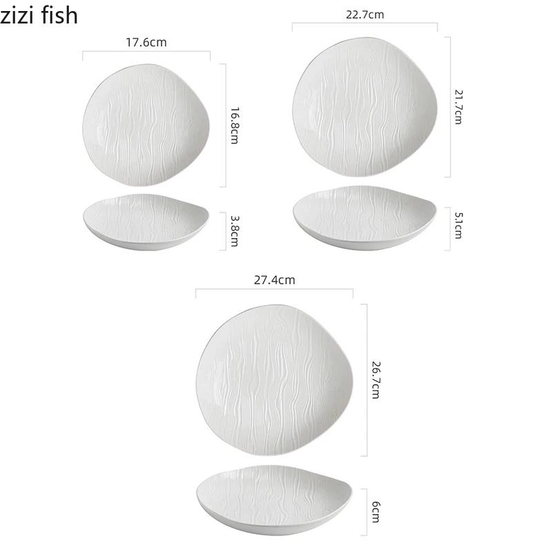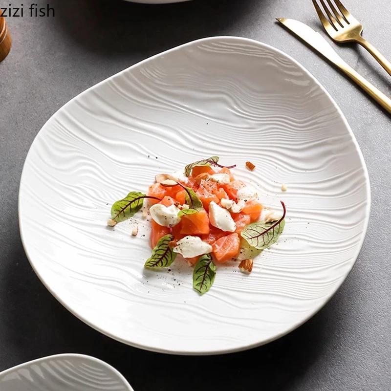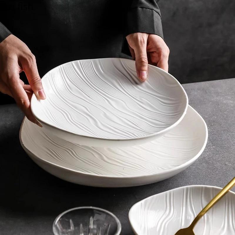 Керамическая тарелка для салата Pure White Ripple Ресторанная неровная глубокая тарелка Толстая тарелка для супа Сервировочные тарелки Креативная посуда
