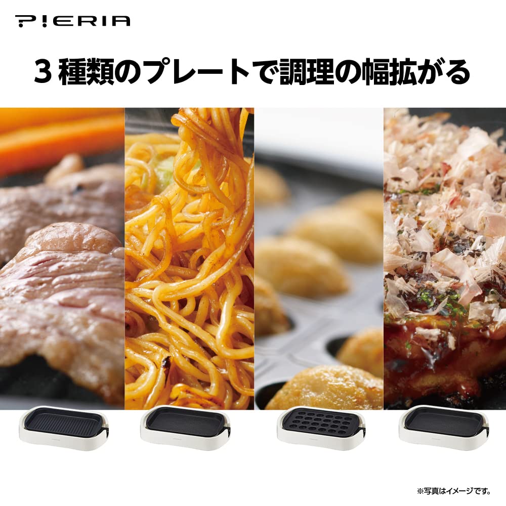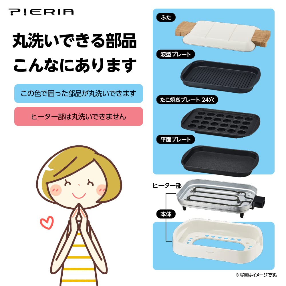 Doshisha Hot Plate with 3 Flat Takoyaki Wave Stepless Temperature Storage Belt Natural Wood Plates, Plate, Plate, Plate, Control, Included,
