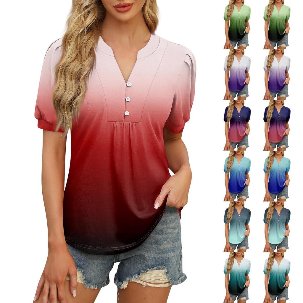 Женские топы, рубашки с коротким рукавом, повседневные летние топы с V-образным вырезом, плиссированные футболки на пуговицах, свободные туники, блузки — купить товар онлайн с бесплатной доставкой до всему миру!