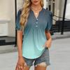 Женские топы, рубашки с коротким рукавом, повседневные летние топы с V-образным вырезом, плиссированные футболки на пуговицах, свободные туники, блузки