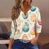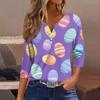 Жен. Футболка Футболка С принтом Пуговицы Рукав 3/4 Повседневные Выходные Мода Классический V-образный вырез Обычный Топ