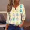 Жен. Футболка Футболка С принтом Пуговицы Рукав 3/4 Повседневные Выходные Мода Классический V-образный вырез Обычный Топ — купить товар онлайн с бесплатной доставкой до всему миру!