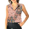 Женский летний свободный топ без рукавов с воротником-стойкой