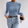 Модная тонкая футболка с круглым вырезом и длинным рукавом, элегантная однотонная трикотажная повседневная футболка для женщин, простая базовая женская укороченная футболка-пуловер 26148