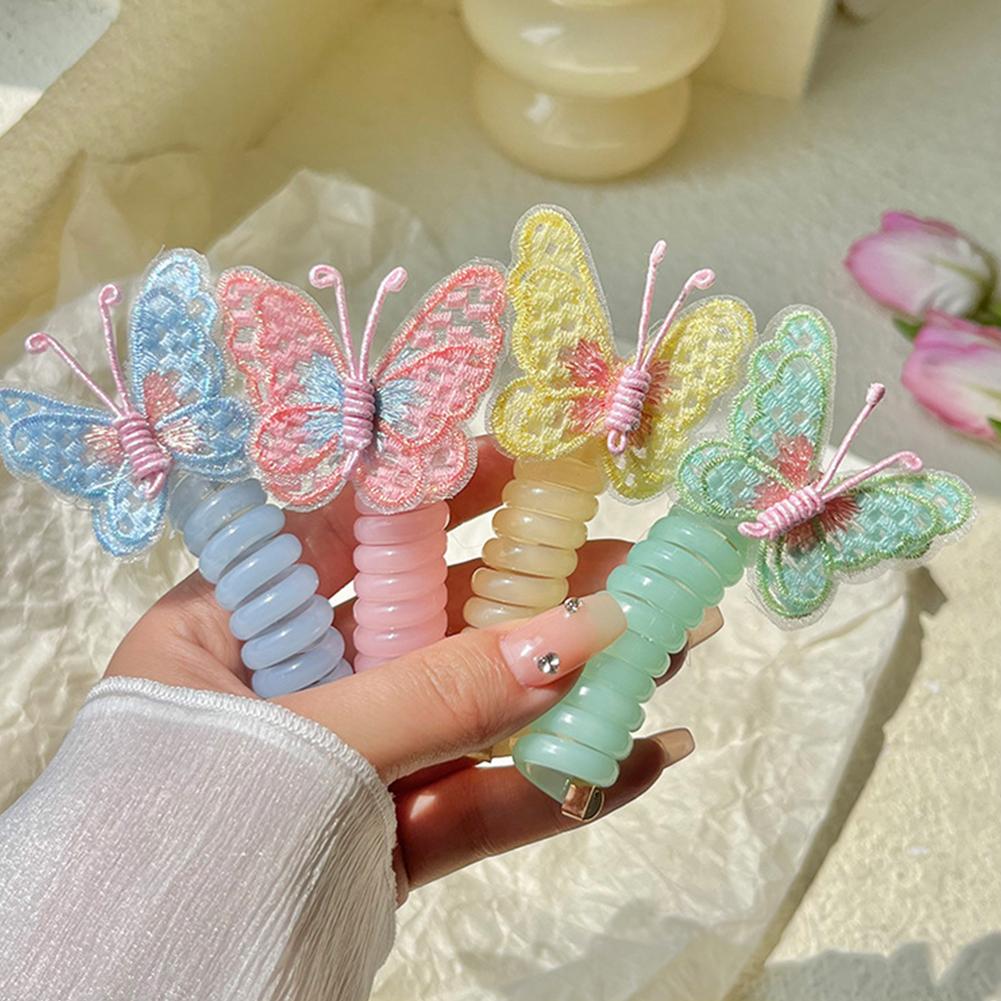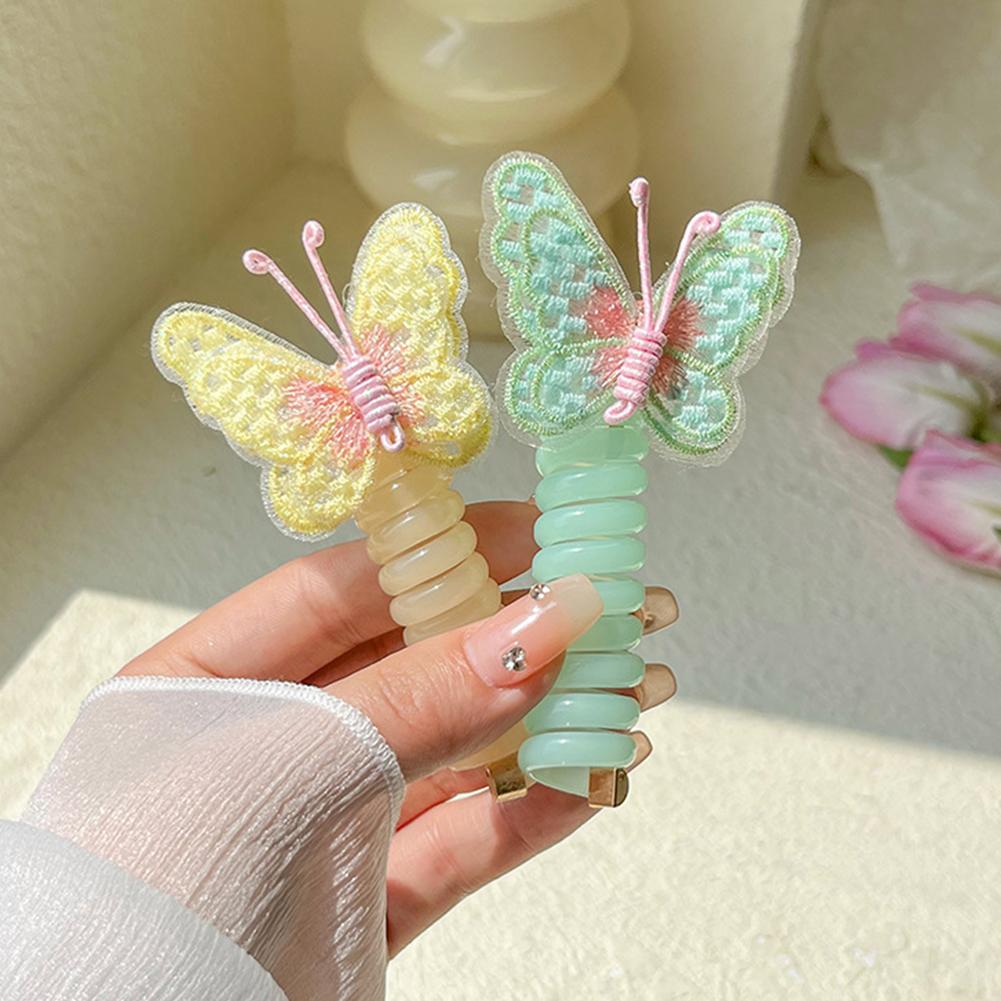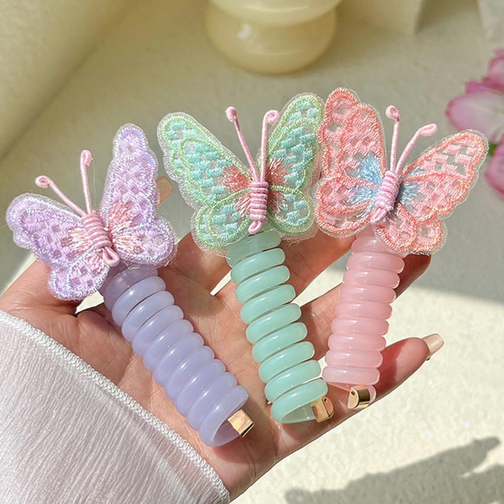 Вышитая бабочка из телефонного провода, повязка для волос, простая, милая, плетеная резинка для волос, высокоэластичный, креативный головной убор в виде конского хвоста