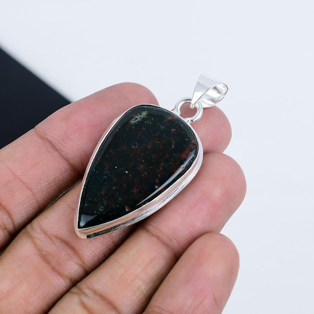 Серебряный кулон с натуральным кровавым камнем из стерлингового серебра 925 пробы — дизайн груши ручной работы, повседневная бижутерия, подарок на День благодарения