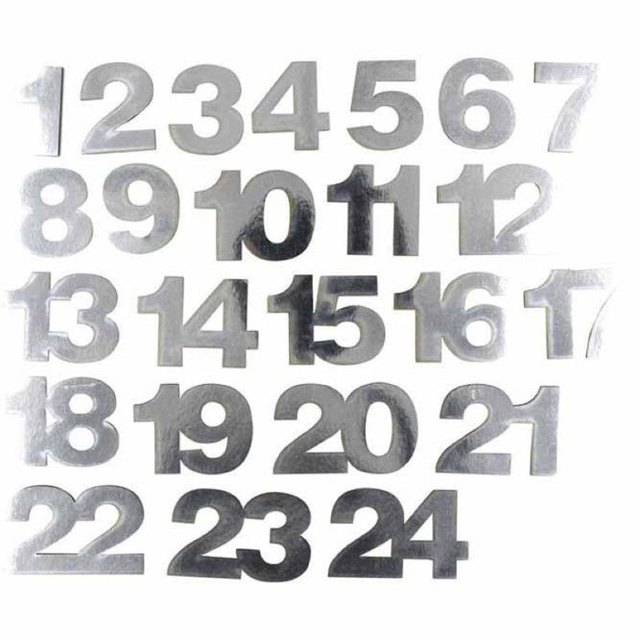 Sticker chiffre de l'Avent Argenté 5 cm 24 pièces