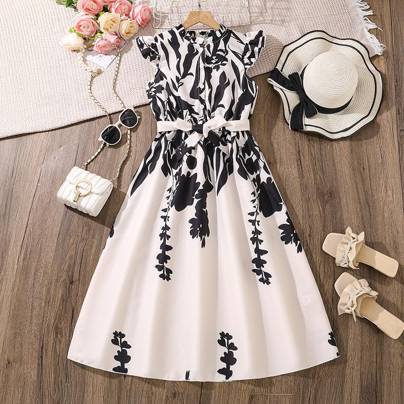 Милое платье для девочек, летнее детское модное платье с принтом и рукавами-крылышками — купить товар онлайн с бесплатной доставкой по всему миру!