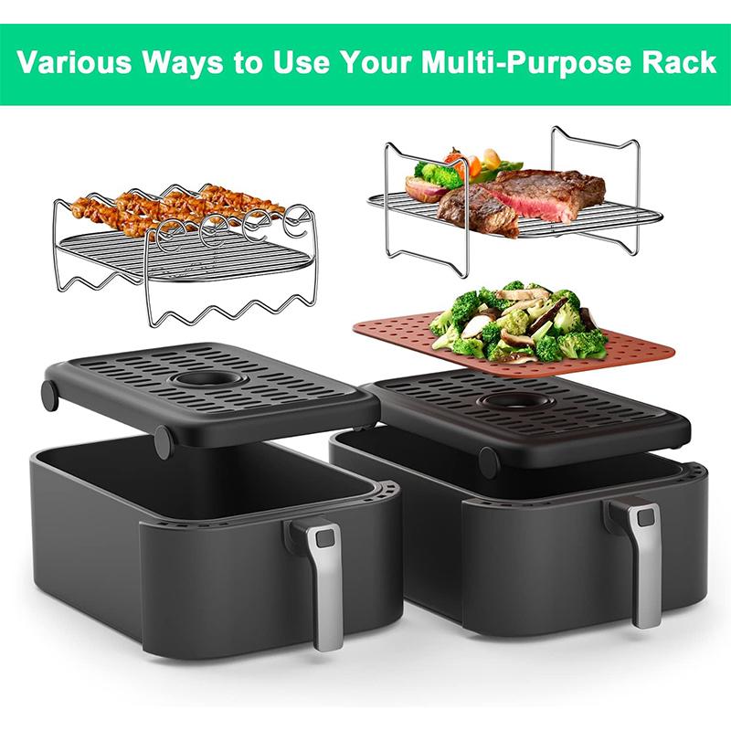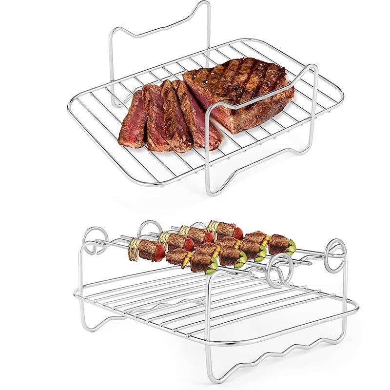 LMETJMA Стойка для фритюрницы с двумя корзинами, многоуровневая стойка для фритюрницы из нержавеющей стали с сушилкой и шампуром JT187