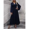 Женское однотонное элегантное платье с рукавами-фонариками, V-образным вырезом и высоким разрезом