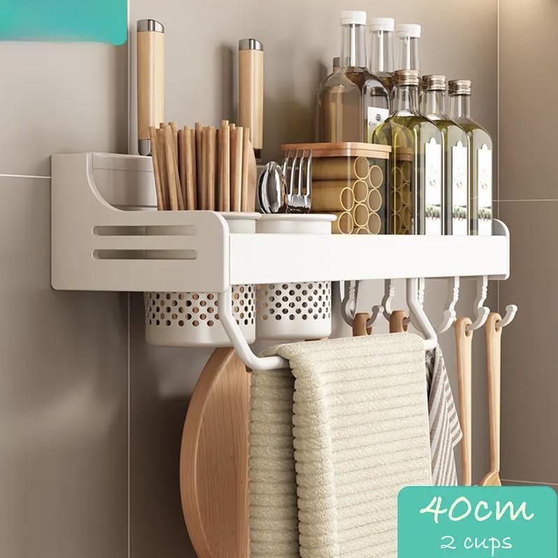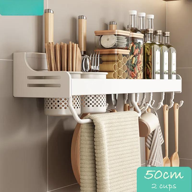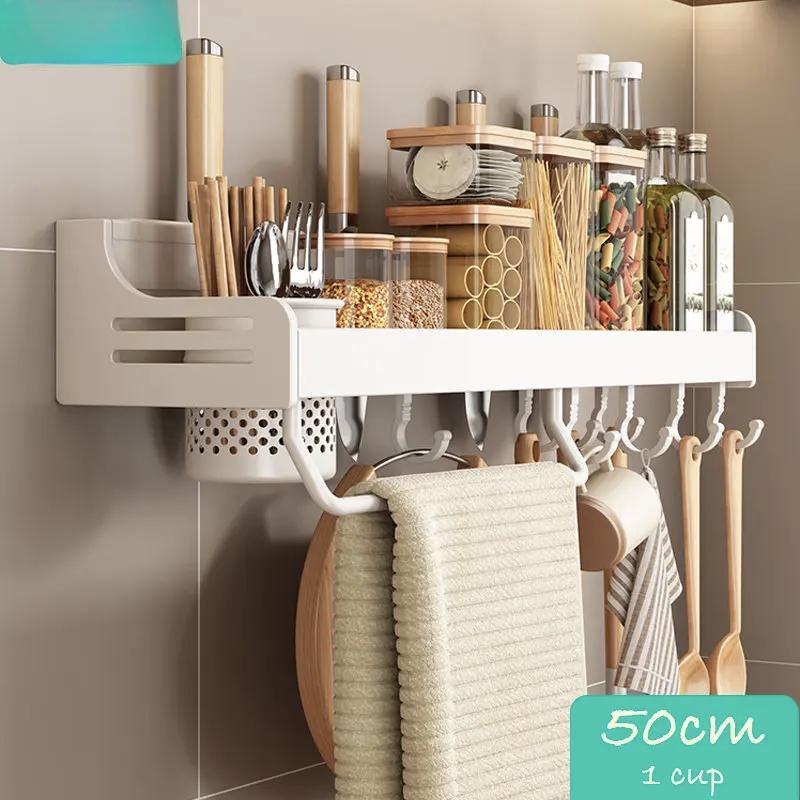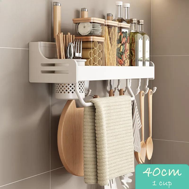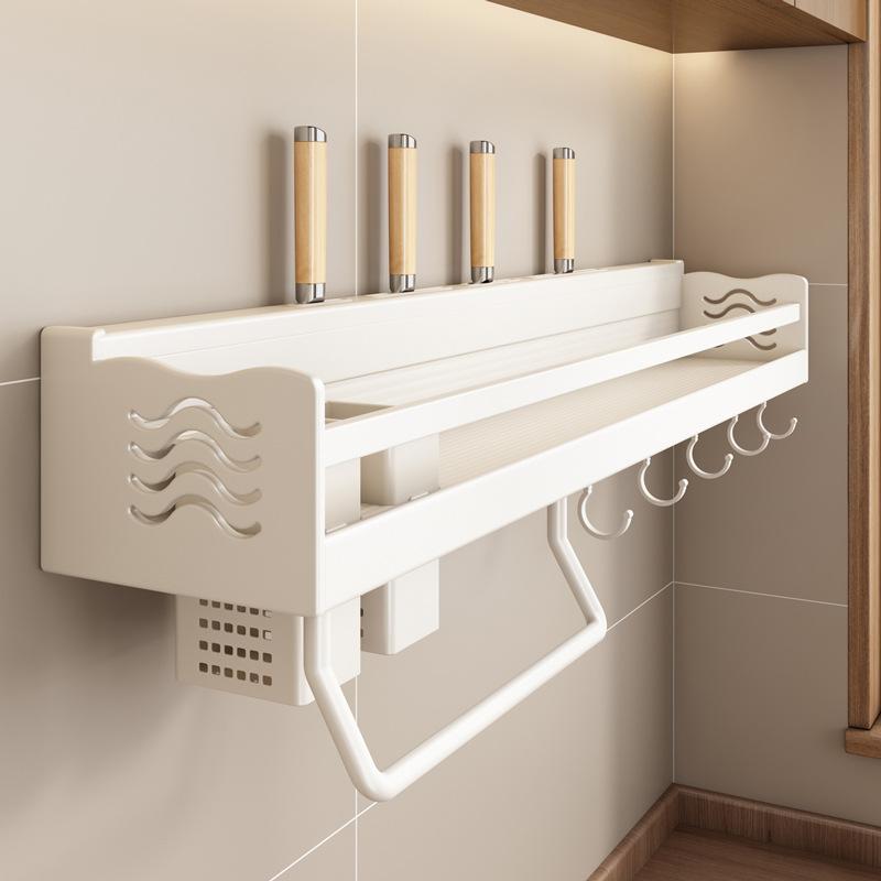 Кухонный органайзер Белый настенный органайзер для полок Настенная полка для специй Многофункциональная полка для хранения бытовых принадлежностей Кухонные принадлежности