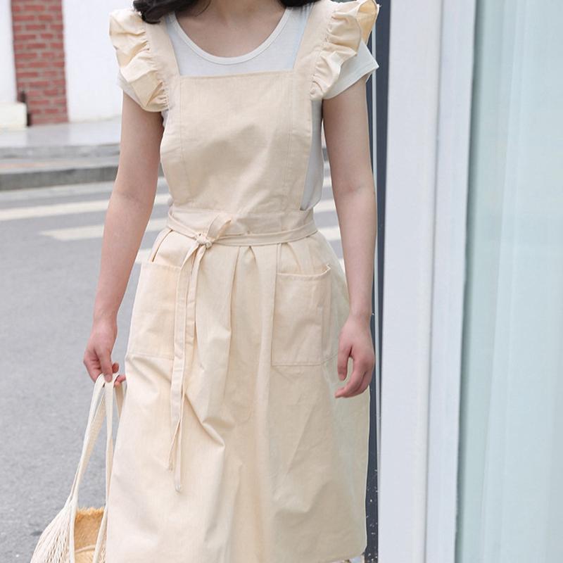 Стирать хлопок лен ретро кухонные фартуки цветочный магазин сад оборки рабочий чистый фартук для приготовления пищи выпечки ресторана женское платье