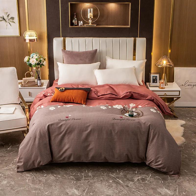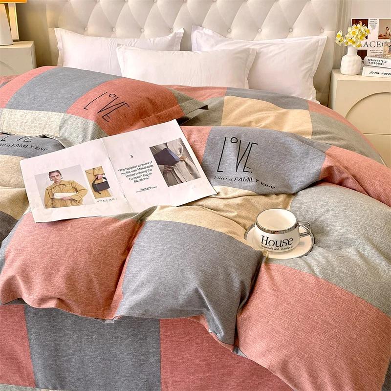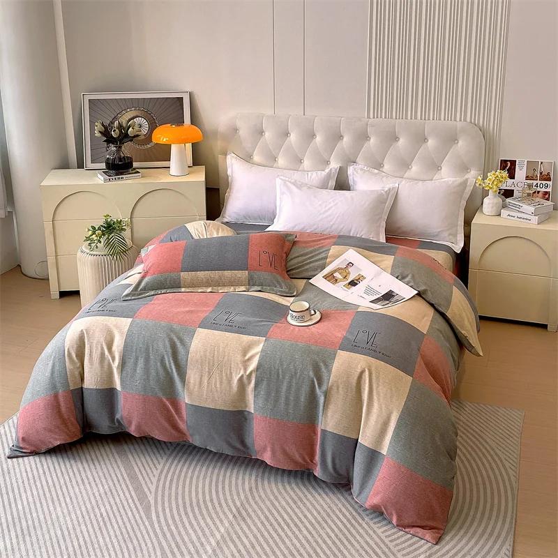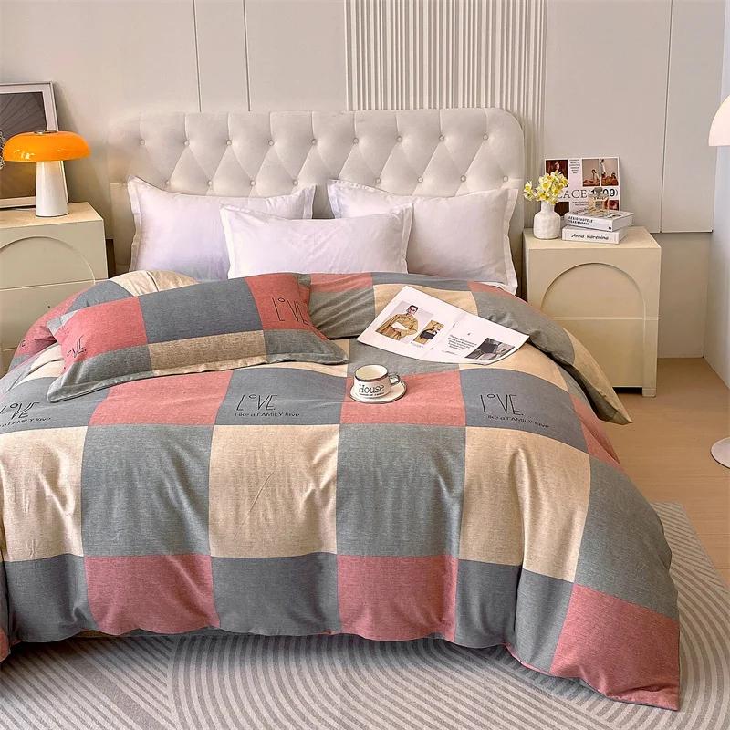 1 шт. Современный пододеяльник с принтом красной и серой клетки, геометрический, размера «queen», для любого сезона, застежка-молния, дышащий, простой в уходе